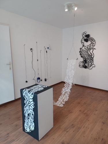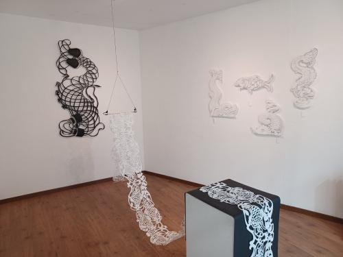 Continuing my “Morphing Technology” Series, I drew obsolete or broken electronic cables, transforming them into sea creatures depicted in art and architecture around Ghent. The combination questions how old things are valued: trash or antique. Antiquarium also playfully imagines a new life for e-waste.